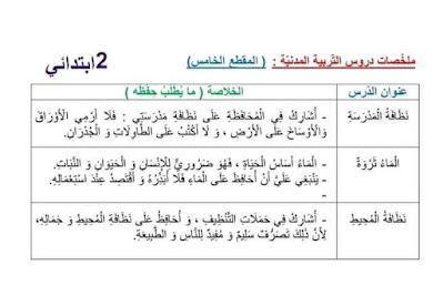 ملخصات دروس الفصل الدراسي الثاني للسنة الثانية ابتدائي الجيل الثاني 2021